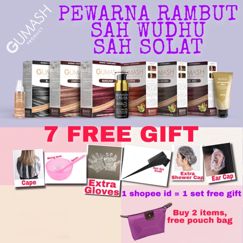Shop Malaysia Free Gift Gumash Hair Colour Pewarna Rambut Halal Sah Wudhu Gumash Hair Serum Hair Mask Inai Rambut Halal 染发剂 Shopee Singapore