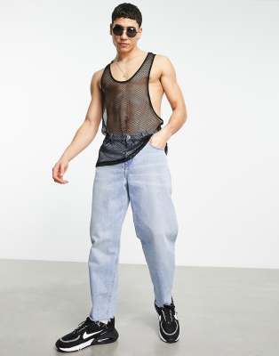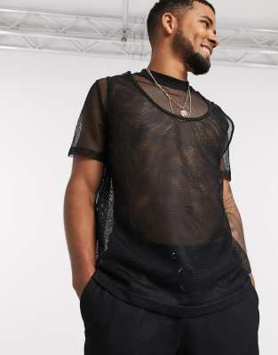 Asos Design Two Piece Relaxed T Shirt In Black Mesh With Double Layer Tank Top Asos